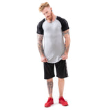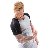 Estremo Fitness Flex-Knit Crew Neck Tees - Grey w/Black Panels