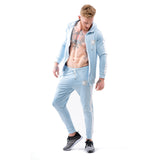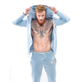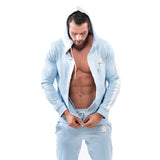 Tracksuit Set-Hooded Slim Jackets & Joggers w / Zippered Pockets - Sky Blue