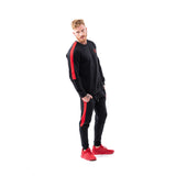 The athletic cut tapered joggers and zip up jackets give a modern look to this tracksuit set.